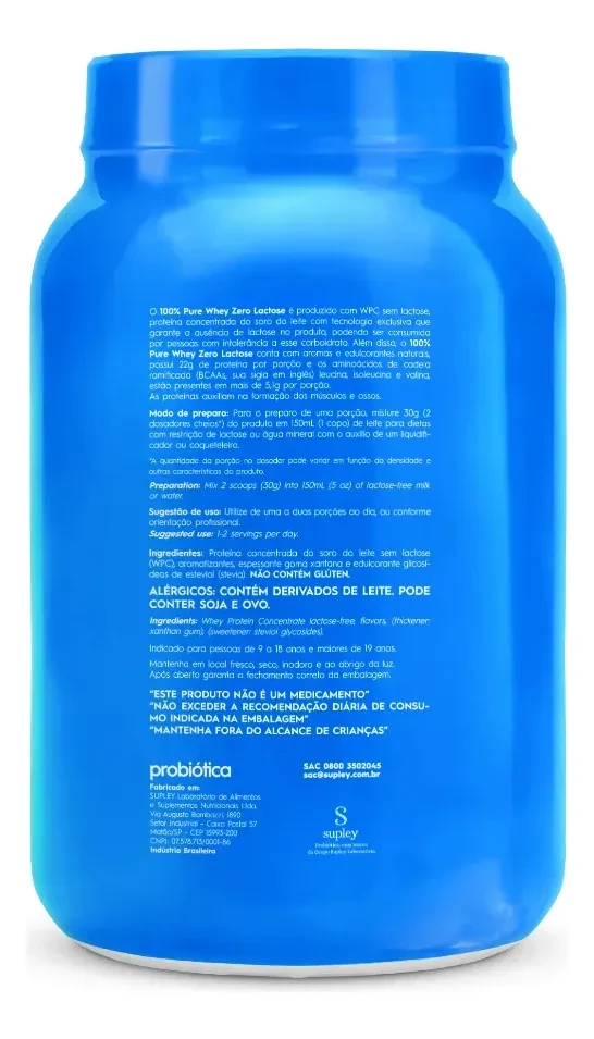 100% Pure Whey Zero Lactose Baunilha Probiótica 900 g Pote
