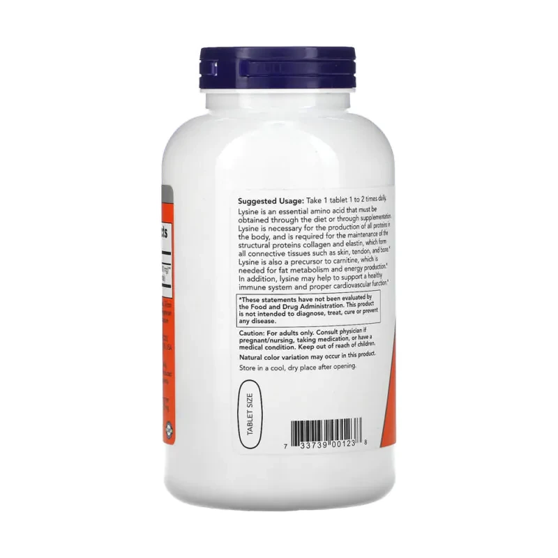 Características da L-Lisina 1000mg NOW® – Dosagem Dupla
