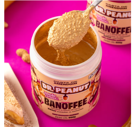 A Pasta de Amendoim Banoffee Dr. Peanut foi desenvolvida para oferecer uma combinação especial entre o sabor do amendoim e o toque doce da banana com caramelo, inspirado na tradicional sobremesa banoffee.